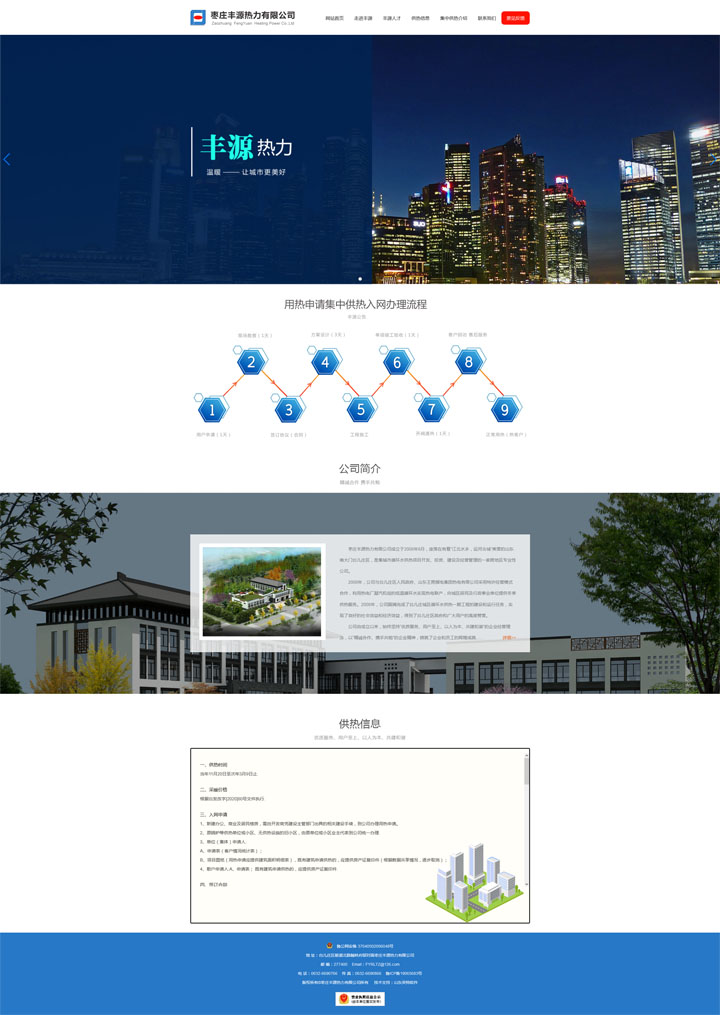 棗莊豐源熱力有限公司成立于2008年8月,座落在有著“江北水鄉(xiāng),運河古城”美譽的山東南大門臺兒莊區(qū),是集城市循環(huán)水供熱項目開發(fā)、投資、建設(shè)及經(jīng)營管理的一家跨地區(qū)專業(yè)性公司。 2008年,公司與臺兒莊區(qū)人民政府、山東王晁煤電集團(tuán)熱電有限公司采用特許經(jīng)營模式合作,利用熱電廠凝汽機組的低溫循環(huán)水實現(xiàn)熱電聯(lián)產(chǎn),向城區(qū)居民及行政事業(yè)單位提供冬季供熱服務(wù)。2008年,公司圓滿完成了臺兒莊城區(qū)循環(huán)水供熱一期工程的建設(shè)和運行任務(wù),實現(xiàn)了良好的社會效益和經(jīng)濟效益,得到了臺兒莊區(qū)政府和廣大用戶的高度贊譽。